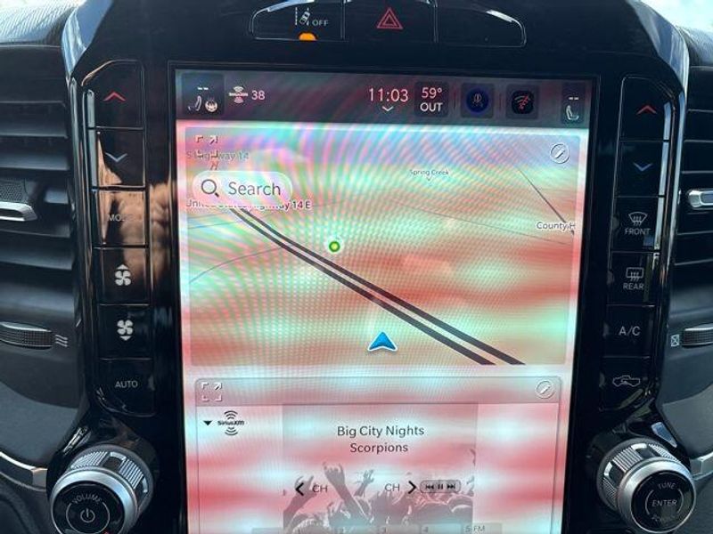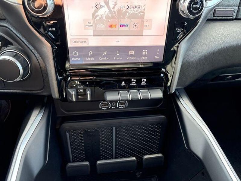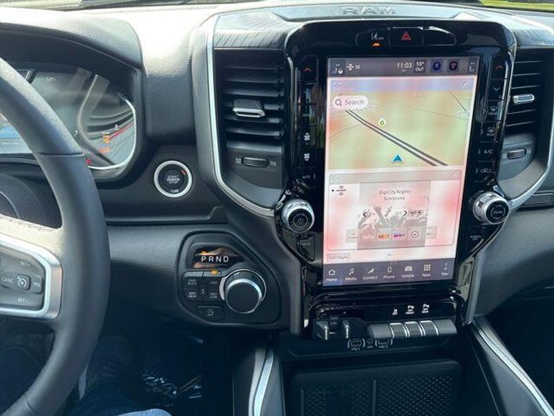 New Arrival! Granite Crystal Metallic Clearcoat 115V Auxiliary Power Outlet, 115V Auxiliary Rear Power Outlet, 12'' Touchscreen Display, 2nd Row In Floor Storage Bins, 3 Rear Seat Head Restraints, 4 Way Front Headrests, 400W Inverter, 4G LTE Wi-Fi Hot Spot, 9 Amplified Speakers w/Subwoofer, Accent Color Door Handles, Accent Color Tailgate Handle, Air Conditioning ATC w/Dual Zone Control, Anti-Spin Differential Rear Axle, Apple CarPlay, Auto Power-Folding Mirrors, Auto-Dimming Exterior Driver Mirror, Auto-Dimming Rear-View Mirror, Big Horn Level 2 Equipment Group, Black Exterior Mirrors, Black Exterior Truck Badging, Black Headlamp Bezels, Black Interior Accents, Black Painted Exterior Mirrors Caps, Black Premium Power Mirrors, Black Tail Lamp Bezels, Body Color Fender Flares, Body Color Front Bumper, Body Color Rear Bumper w/Step Pads, Bucket Seats, Center Console Parts Module, Cluster 7.0'' TFT Color Display, Configurable Drive Mode, Connected Travel & Traffic Services, Connectivity - US/Canada, Convex Wide-Angle Exterior Mirror Insert, Deluxe Cloth Bucket Seats, Disassociated Touchscreen Display, Dual Exhaust w/Black Tips, Exterior Mirrors Courtesy Lamps, Exterior Mirrors w/Heating Element, Exterior Mirrors w/Supplemental Signals, Front Seat Back Map Pockets, Full Length Floor Console, Global Telematics Box Module (TBM), Glove Box Lamp, Google Android Auto, GPS Antenna Input, GPS Navigation, Grille Black Surround Black Mesh, HD Radio, Heated Front Seats, Heated Steering Wheel, Integrated Center Stack Radio, Integrated Voice Command w/Bluetooth, Leather Wrapped Steering Wheel, LED Dome Lamp w/On/Off Switch, LED Footwell Lighting, Manual Adjust 4-Way Front Passenger Seat, Media Hub w/2 Charge Only USBs, Night Edition, Overhead LED Lamps, Power 2-Way Driver Lumbar Adjust, Power Adjust 8-Way Driver Seat, Power Adjustable Pedals, Premium Overhead Console, Radio: Uconnect 5 Nav w/12.0'' Display, RAM Grille Badge - Black, Rear 60/40 Folding Seat, Rear Center Armrest, Rear Power Sliding Window, Rear Window Defroster, Remote Tailgate Release, Secondary Active Grille Shutters, Security Alarm, SiriusXM Radio Service, SiriusXM w/360L, Steering Wheel Mounted Audio Controls, Sun Visors w/Illuminated Vanity Mirrors, USB Host Flip, Wheels: 20'' x 9.0'' Aluminum Painted Clad, Wheels: 20'' x 9'' Aluminum Chrome Clad (WRK), Wireless Charging Pad.